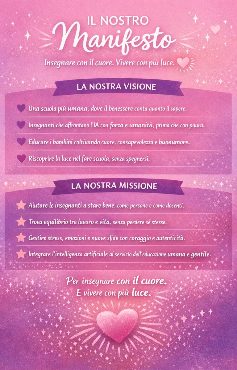 Ho creato questo progetto per aiutare le insegnanti a insegnare con il cuore e vivere con più luce, anche dentro una scuola che spesso chiede tanto e restituisce poco.