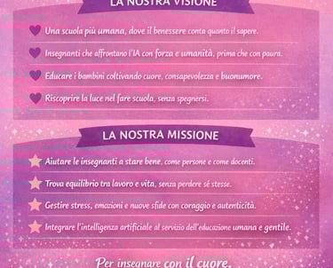 "A.I. come Anima Insegnante", dedicata "ridefinizione" di una "figura di docente" capace di "coltivare umanità", un docente rinnovato, consapevole, empatico e coraggioso, che accompagni i bambini, non solo nell'uso delle tecnologie, ma soprattutto nello sviluppo emotivo, sociale e relazionale. Perché il futuro avrà bisogno di competenze, sì, ma ancora di più di CUORE, empatia e saggezza;